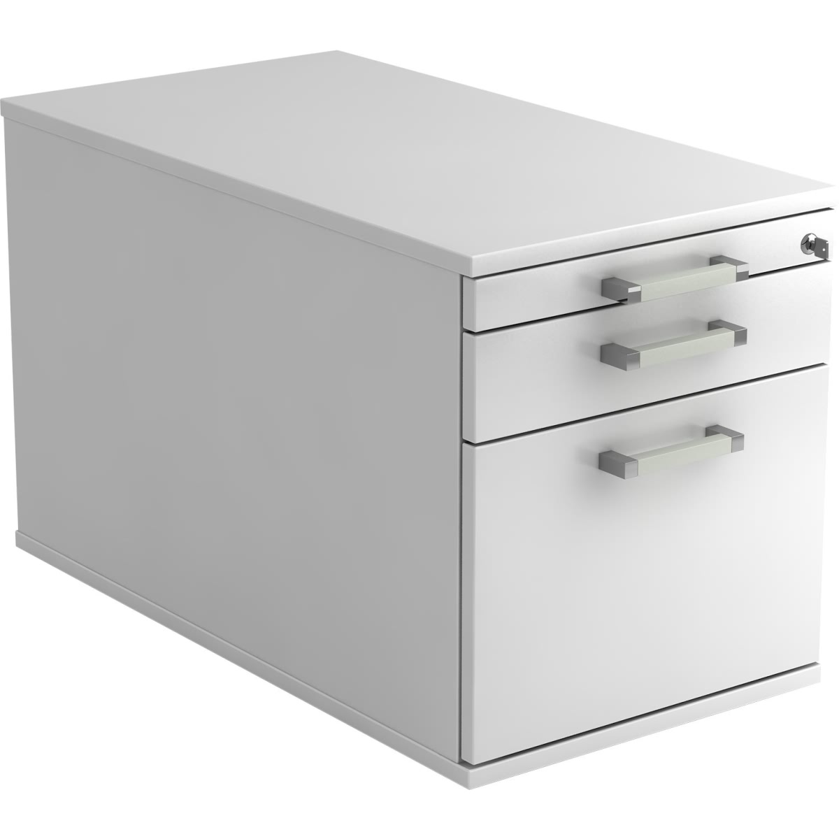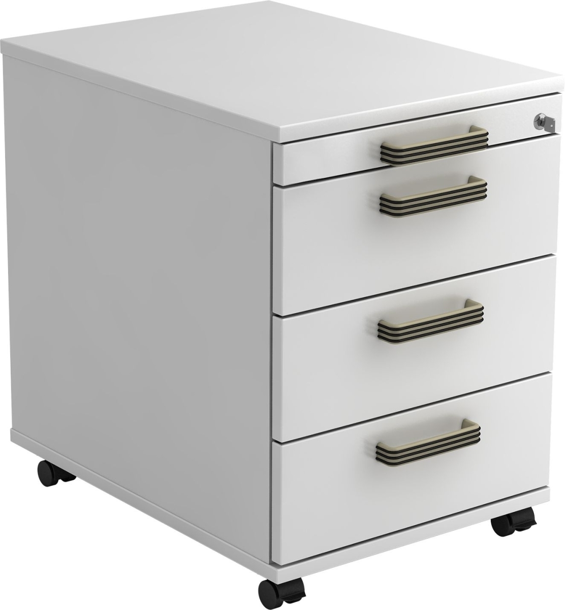 Rollcontainer Arvo | Weiß | HxBxT 51,2x42,8x80cm | Streifengriff | 3 Schübe | Mit Schloss & Zentralverriegelung