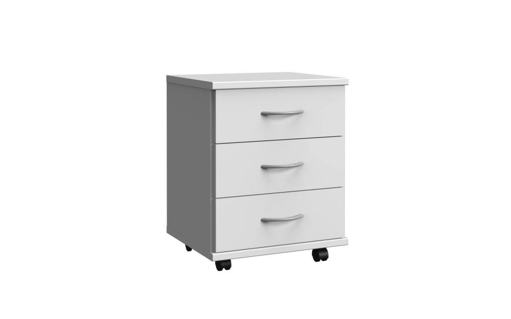bümö basic Rollcontainer - mit 3 Schubladen - Griff: Relinggriff (Kunststoff), Nachbildung: Weiß