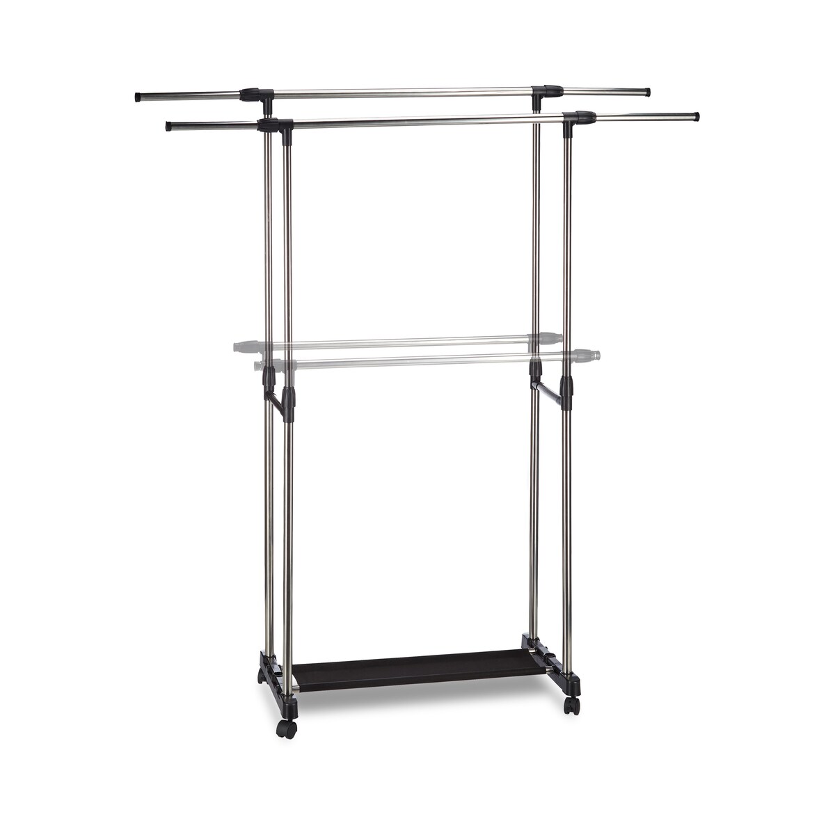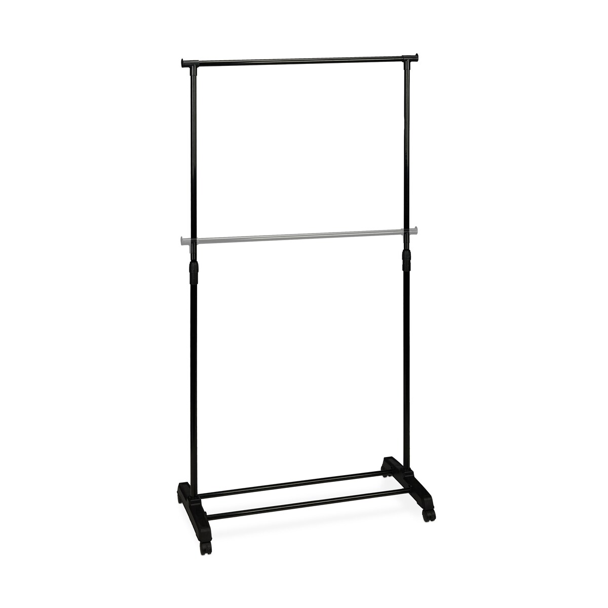 Relaxdays Rollgarderobe mit 2 Kleiderstangen, ausziehbar, Kleiderständer auf Rollen, HBT: 162x150x48 cm, silber/schwarz