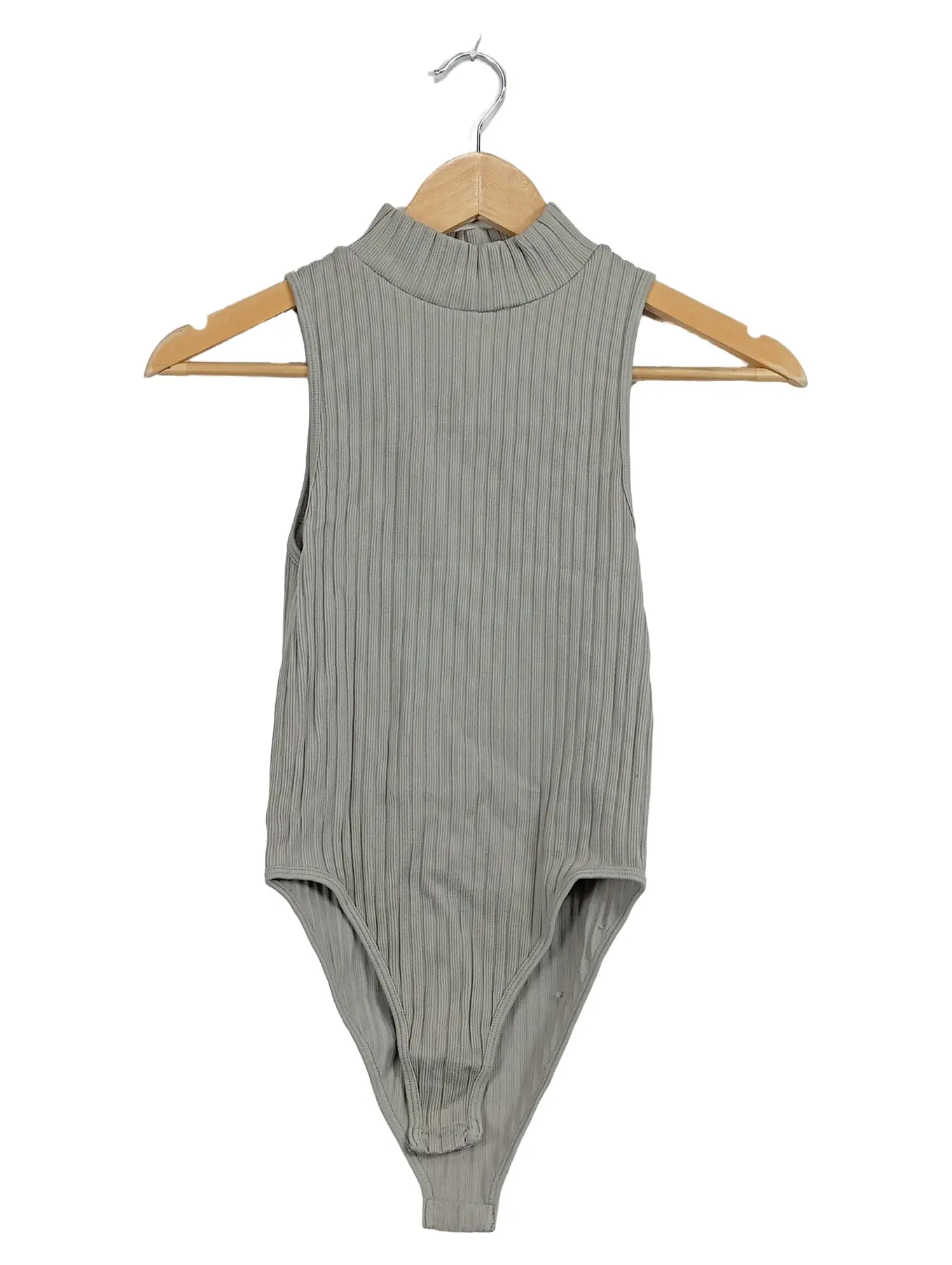 ZARA Damen Body Rollkragen Ärmellos Rippstrick Grau Gr. 40 L