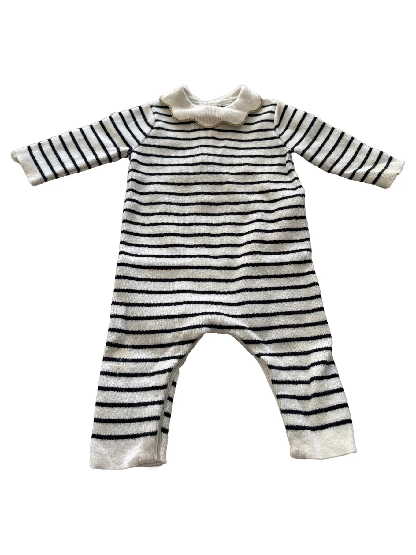 JACADI Baby Body Gr. 62 Weiß Gestreift Rollkragen Baumwolle Wolle