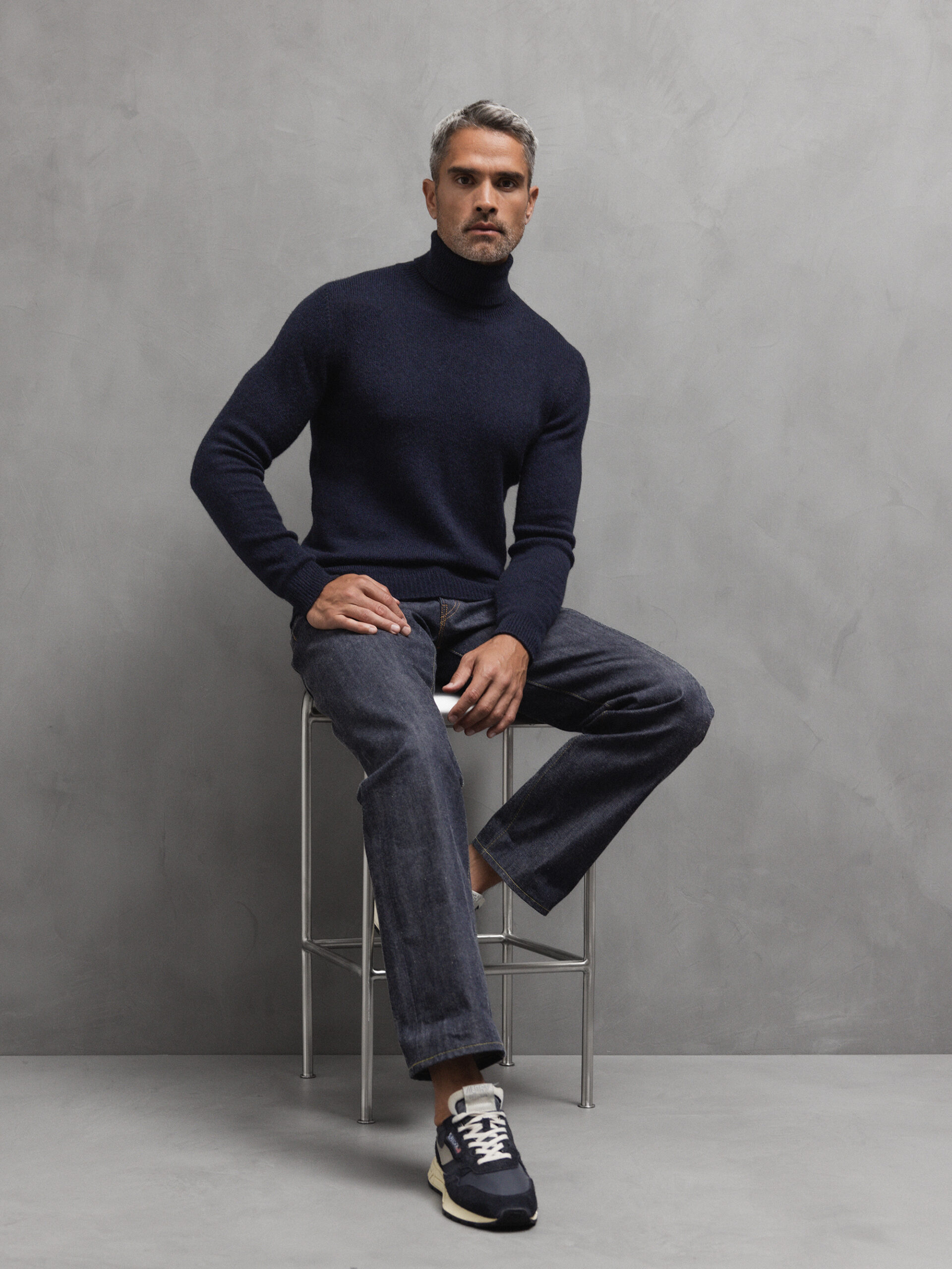 Lyle & Scott Rollkragenpullover aus Baumwoll-Merinowolle – Marineblau