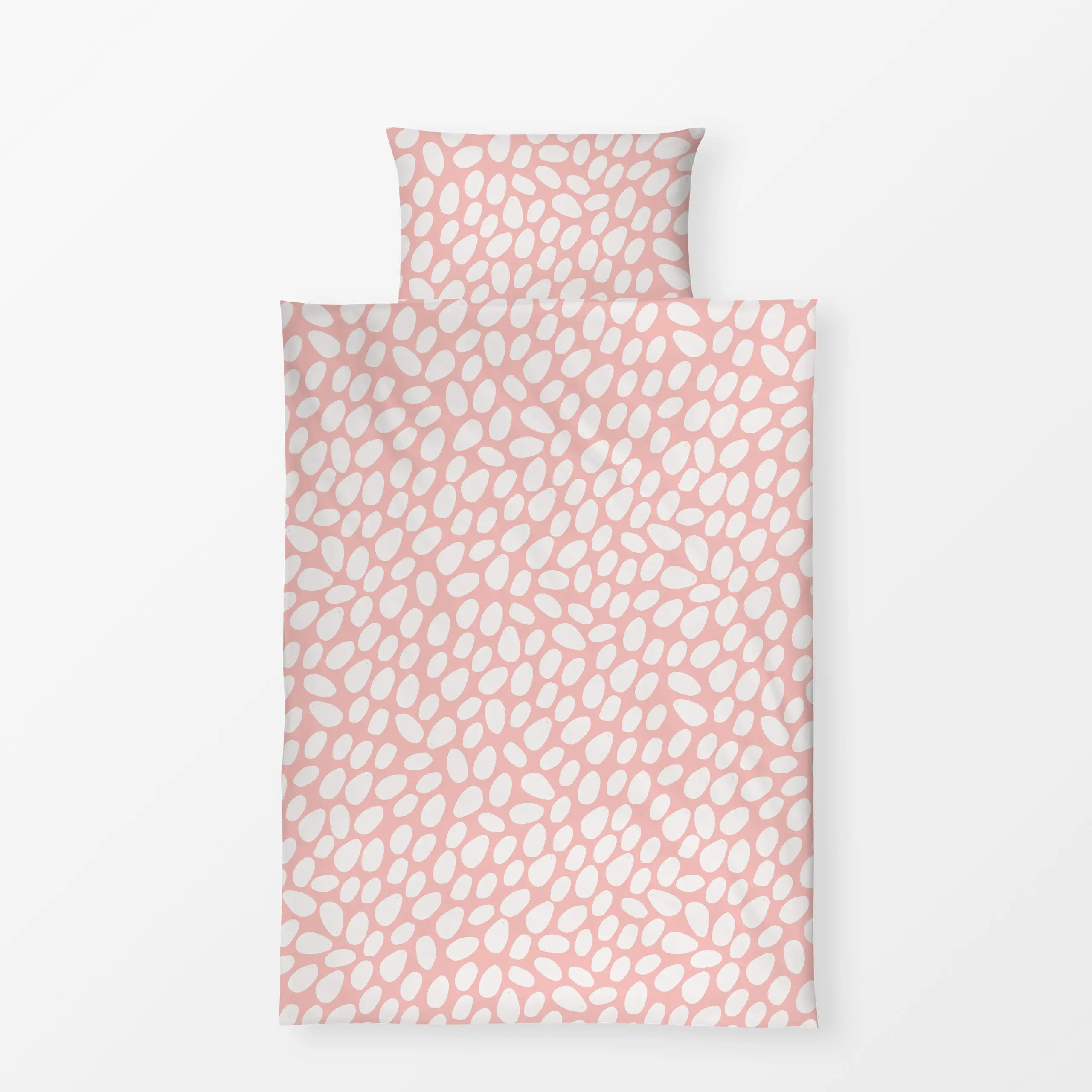 Alvi Kinder Bettwäsche 80x80 + 40x35 – Rosa – Baumwolle – Set aus Kissen- & Deckenbezug – Punkte & Blumen