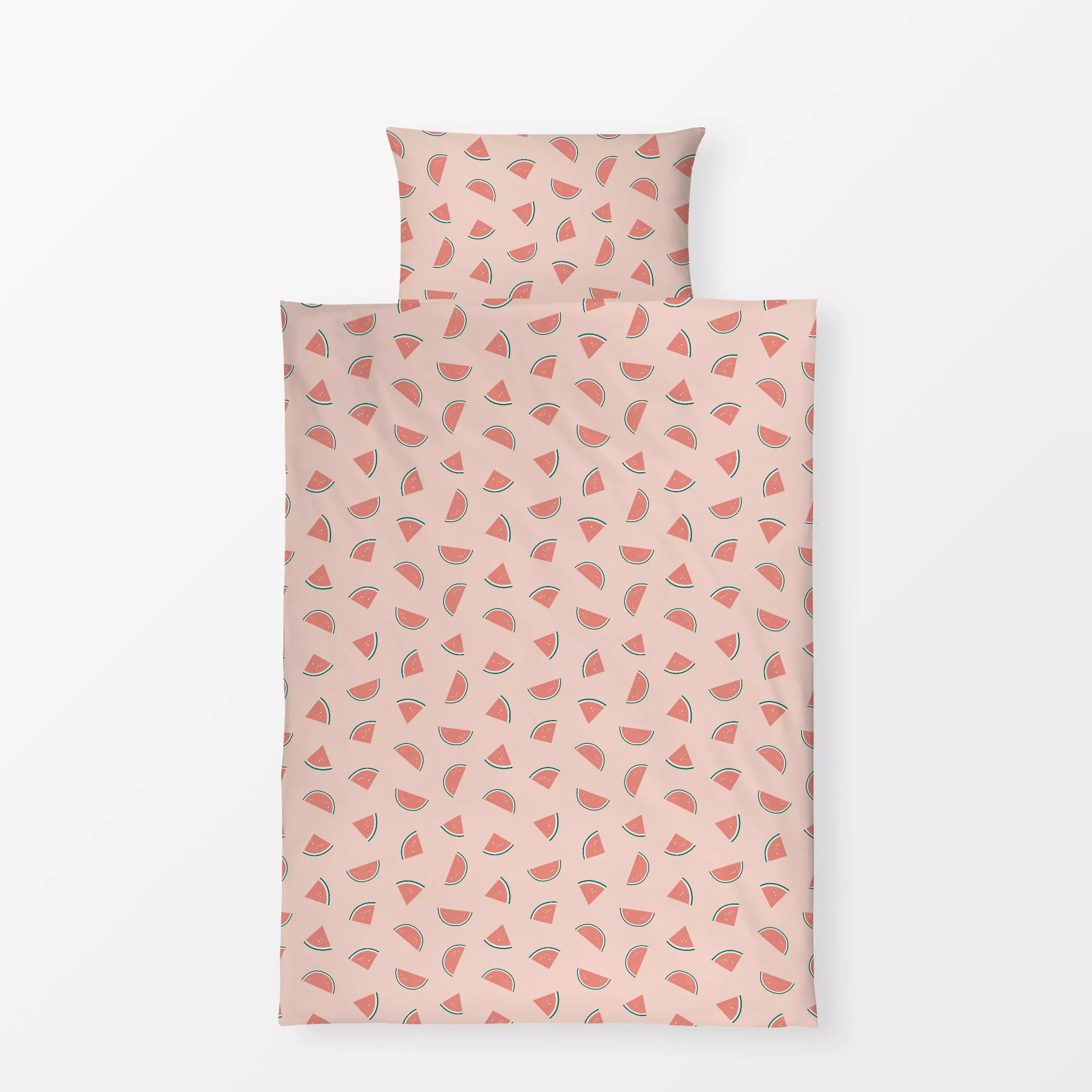Bettwäsche Summer Watermelon coral - Sommer, Symbole & Muster - von „Karen Menzenbach"; Obst, Muster, Kinder, rosa, Sommer, ...
