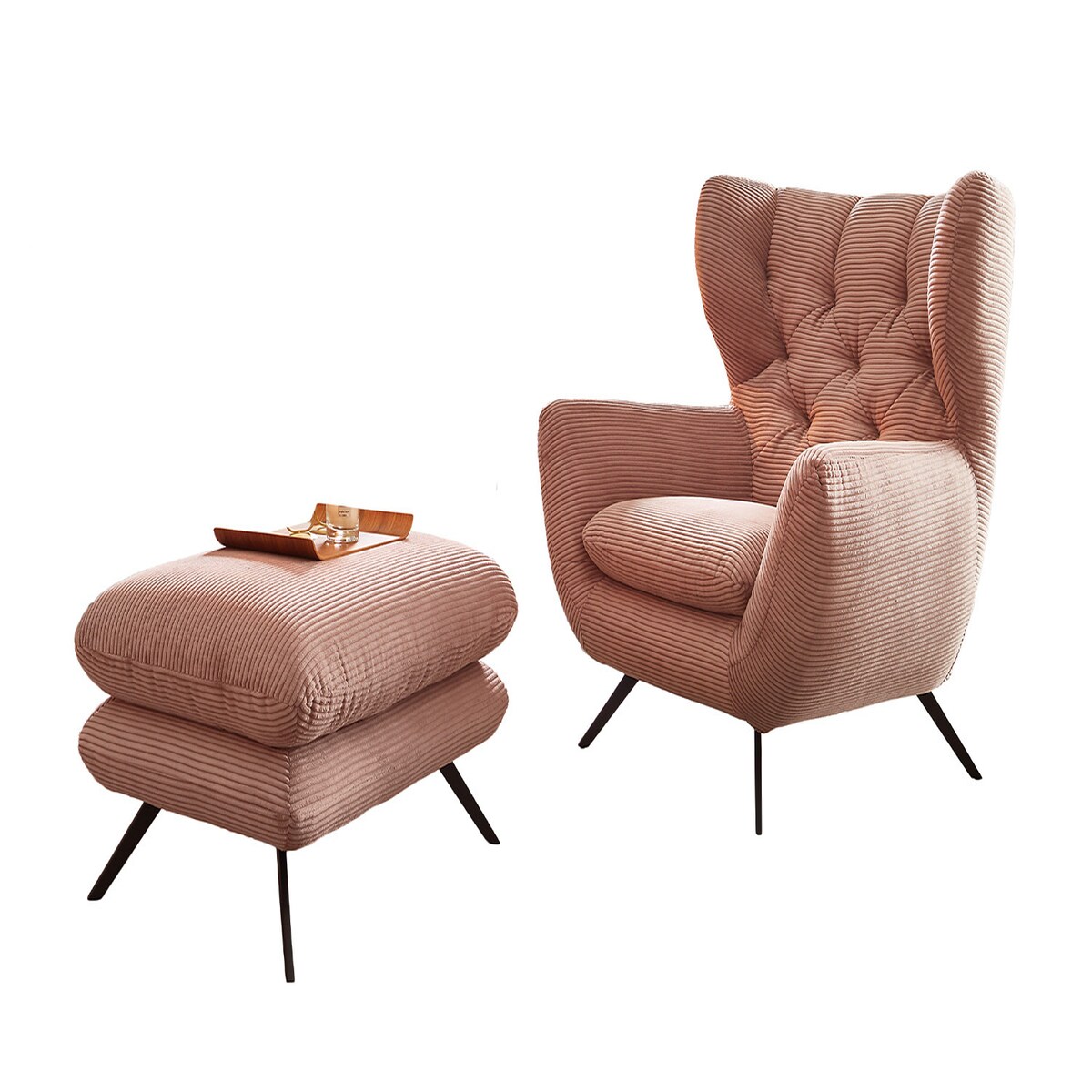 KAWOLA Sessel CHARME Hochlehnsessel Cord rosa mit Hockerbank
