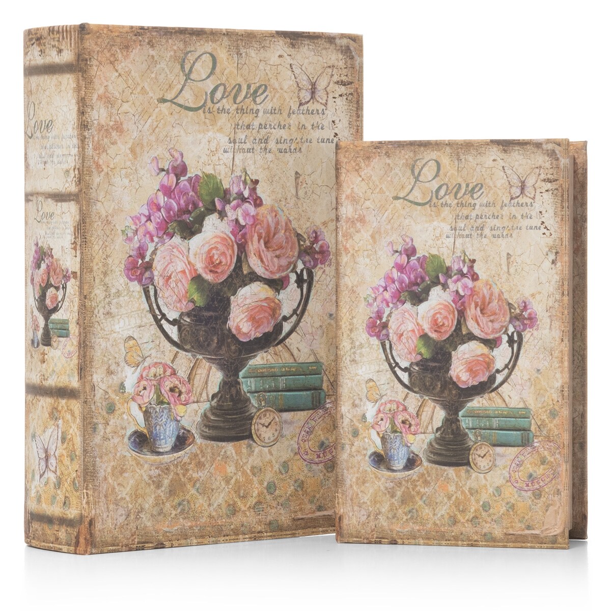 Moritz 2er Set Aufbewahrungsbox Deko Blumen Rosen in Vase Love Buch Safe Box Schatulle Buchhülle Geldversteck