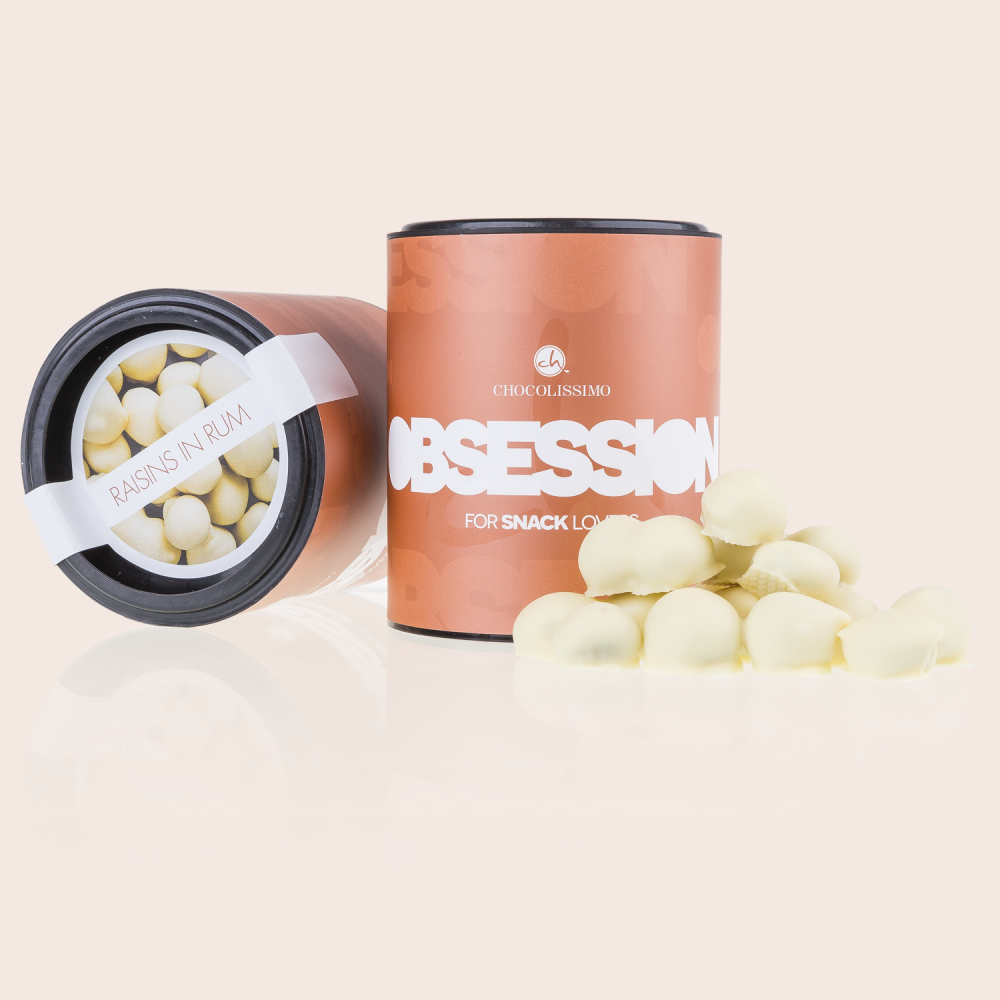 Schokoladen-Rosinen weiß - Rosinen in weißer Schokolade verfeinert mit Rum | Chocolissimo