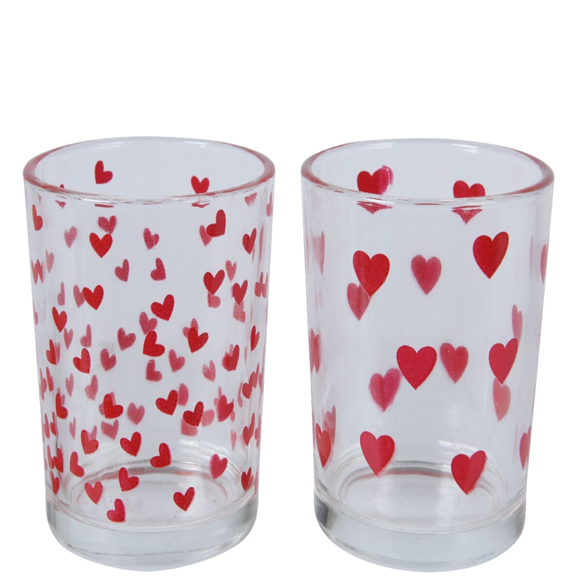 Decoris 1 Teelichthalter Glas 6,5cm Teelichtglas rote Herzen Tischdeko Kerzenglas Glas Teelichter Windlicht Kerzenhalter Dekoglas Windlichtglas