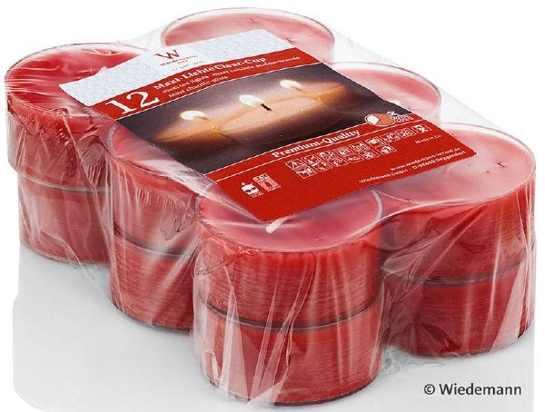 Wiedemann Kerzen Rubin rote 12er Flatpack Maxi-Teelichte PC Cup 8 Stunden 21 x 56 mm,