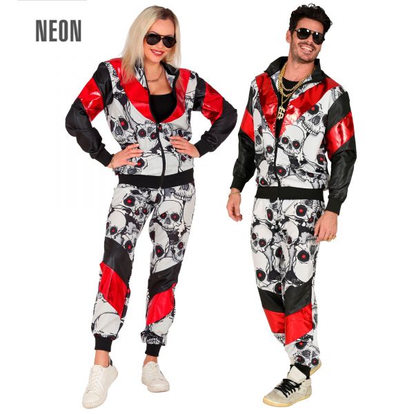 Schwarz / rote Totenköpfe Trainingsanzug (Oberteil, Hose), XL - Widmann