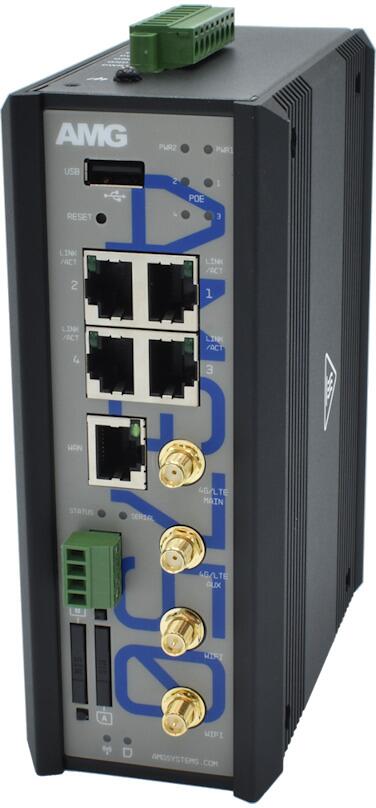 Hanwha Vision PoE Router Industrial-Ethernet-Lösungen, 4G/LTE, Cat4 (AMG750-1G-4GAT-1E4-P120/HWEU)