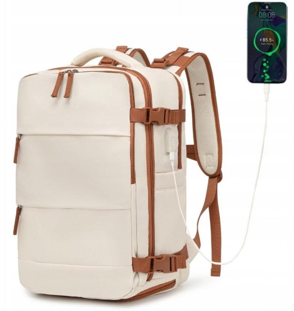 Delgeo Reiserucksack für Damen und Herren, Großer Handgepäck-Rucksack, Erweiterbare Handgepäcktasche, 17-Zoll-Laptop-Rucksack für Reisen, Beige