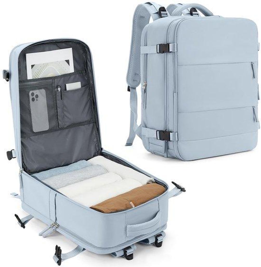 OKWISH Reiserucksack für Damen und Herren, Großer Handgepäck-Rucksack, Erweiterbare Handgepäcktasche, Laptop-Rucksack für Reisen, Wandern im F...