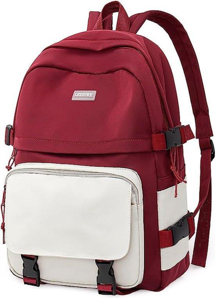 Schulrucksack Teenager Tagesrucksäcke Rucksack Herren Damen Umhängetasche Daypack Schulranzen Laptop Rucksack für Ausflüge Uni Schule Büro, rot
