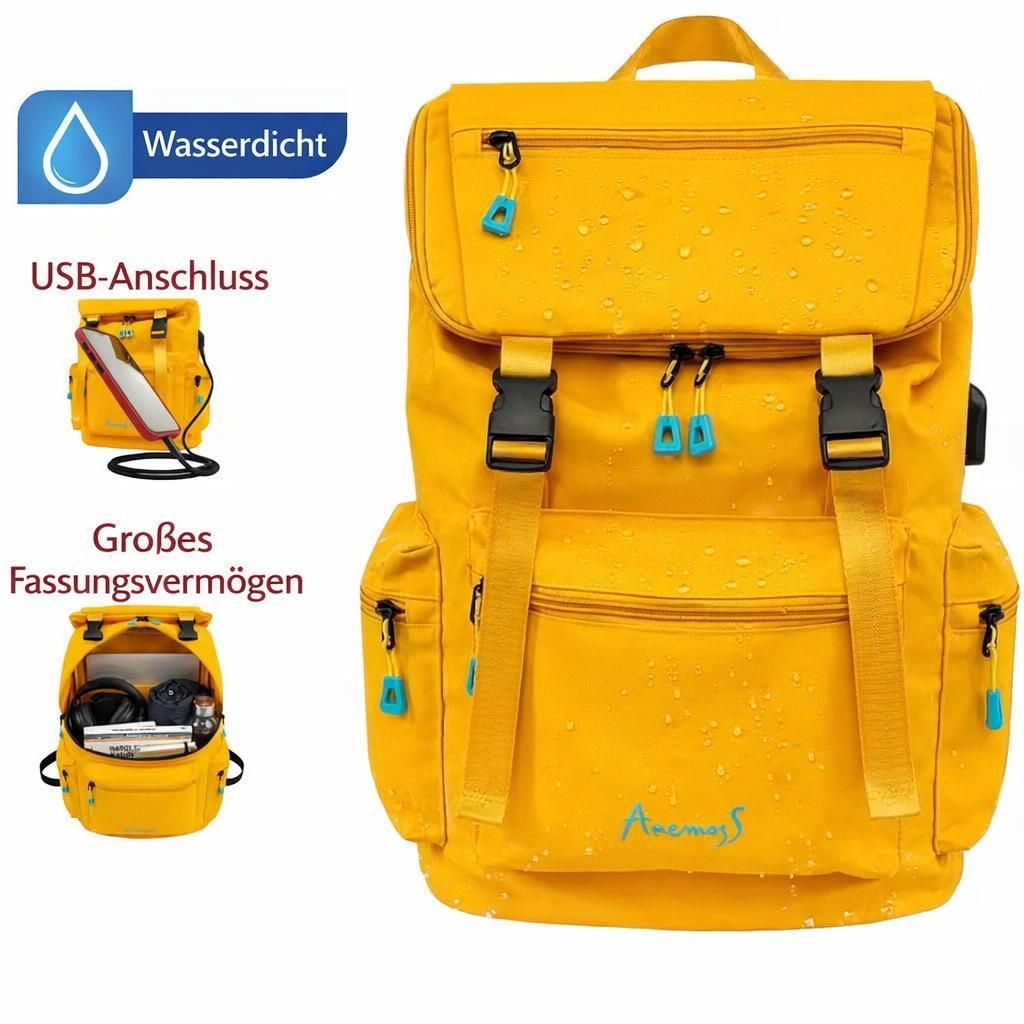 Anemoss Laptop-Rucksack, wasserdicht, 15-Zoll Laptopfach, für Damen und Herren, ideal für Arbeit, Reisen und Wandern, Gelb