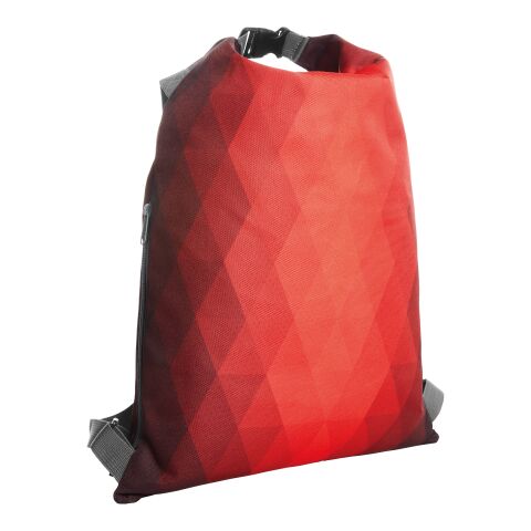 Werbeartikel Warsaw 20 L Rucksack aus rPET.Roll-Top- und Schnallenverschluss – rot – mit Logo bedruckt