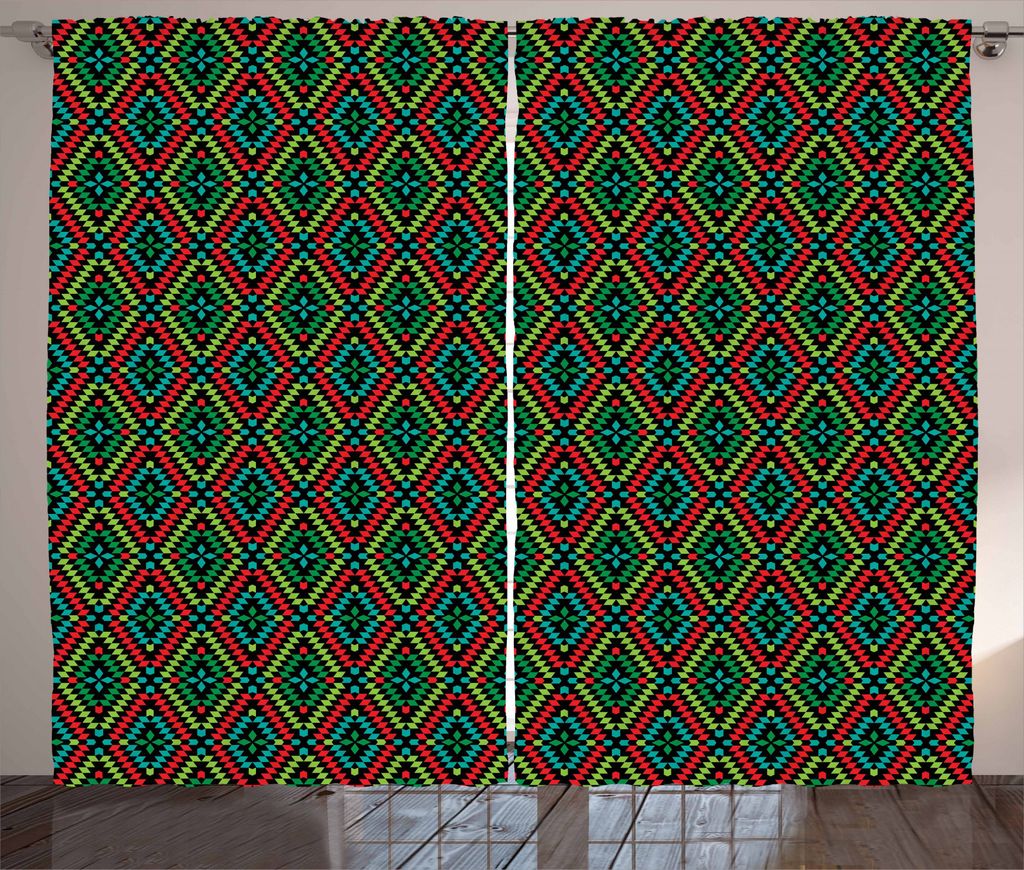 ABAKUHAUS Kunst Rustikaler Gardine, Diagonal Geometrische Vibrant, Schlafzimmer Kräuselband Vorhang mit Schlaufen und Haken, 280 x 245 cm, Mehrfarbig
