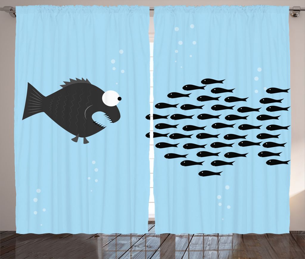 ABAKUHAUS Fisch Rustikaler Gardine, Lustige Cartoon-Motivation, Schlafzimmer Kräuselband Vorhang mit Schlaufen und Haken, 280 x 175 cm, Blau und S...