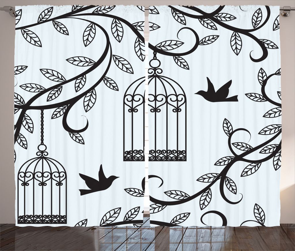 ABAKUHAUS Vögel Rustikaler Gardine, Zweig der Blumenbaum, Schlafzimmer Kräuselband Vorhang mit Schlaufen und Haken, 280 x 245 cm, Blau Schwarz