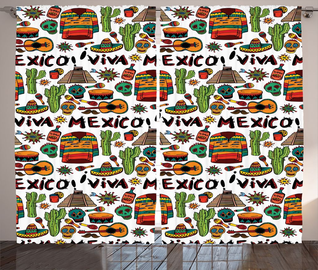 ABAKUHAUS Mexikaner Rustikaler Vorhang, Cartoon Cactus Salsa, Wohnzimmer Universalband Gardinen mit Schlaufen und Haken, 280 x 175 cm, Mehrfarbig