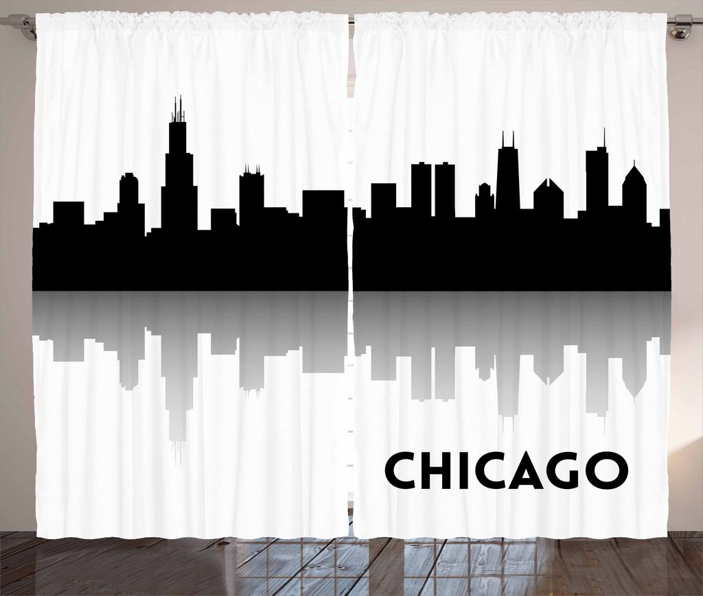 ABAKUHAUS Chicago Rustikaler Vorhang, Downtown Skyscapers, Wohnzimmer Universalband Gardinen mit Schlaufen und Haken, 280 x 175 cm, Schwarz und weiß