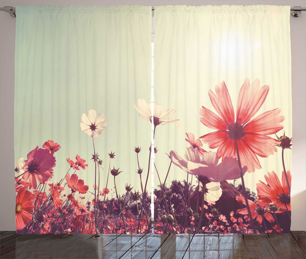 ABAKUHAUS Blumen Rustikaler Vorhang, Vintage Cosmos Pflanze Himmel, Wohnzimmer Universalband Gardinen mit Schlaufen und Haken, 280 x 175 cm, Himmel...