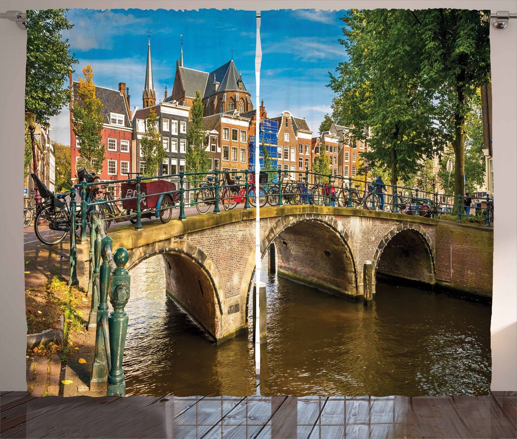 ABAKUHAUS Amsterdam Rustikaler Vorhang, Alte Brücke über einen Kanal, Wohnzimmer Universalband Gardinen mit Schlaufen und Haken, 280 x 225 cm, Me...