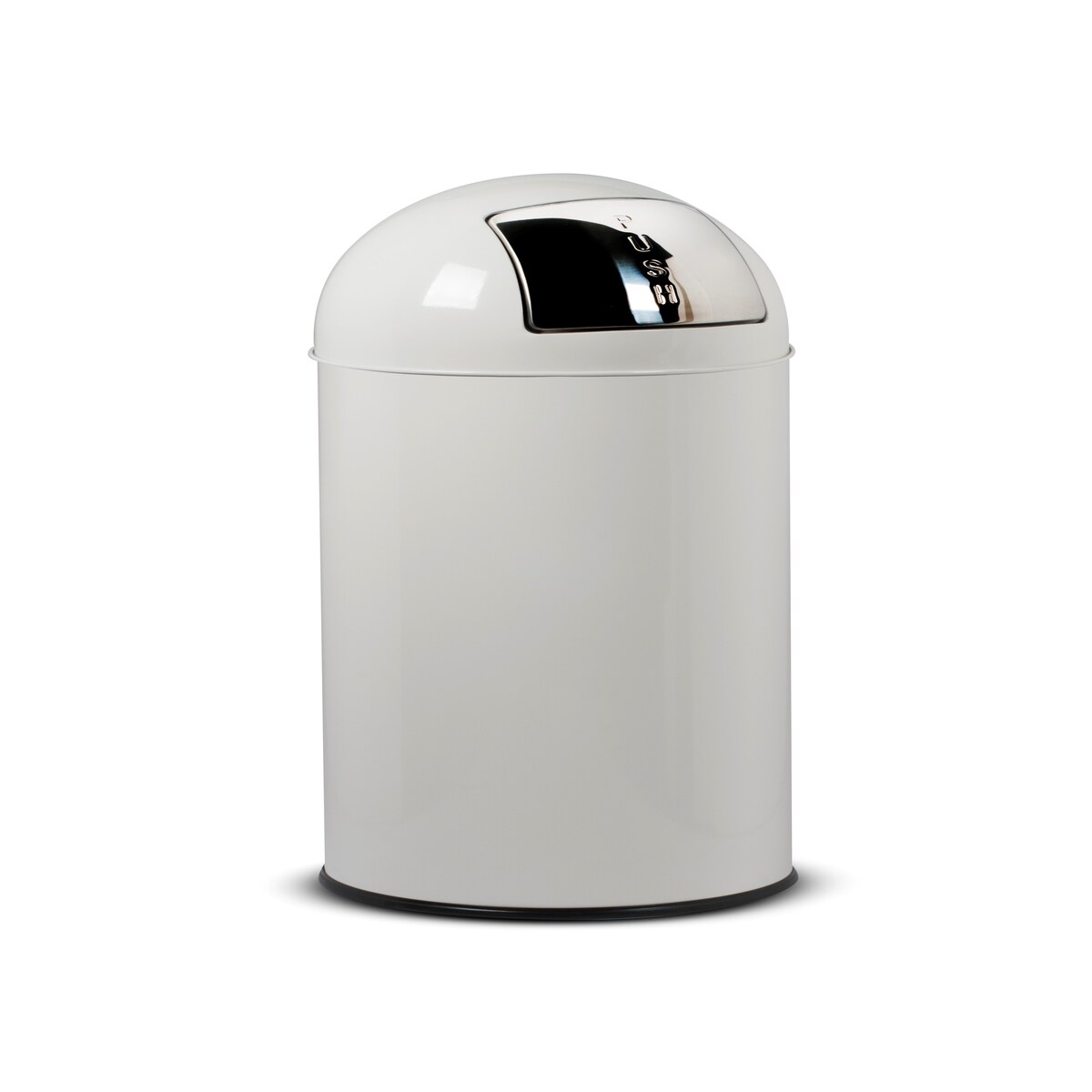 Stil Casa Abfalleimer für Innenräume, Ø 35 x h. 92 cm, lackierter Stahl, Push-Öffnung, Sackhalterring, Metallboden, 68 Liter, weiß.