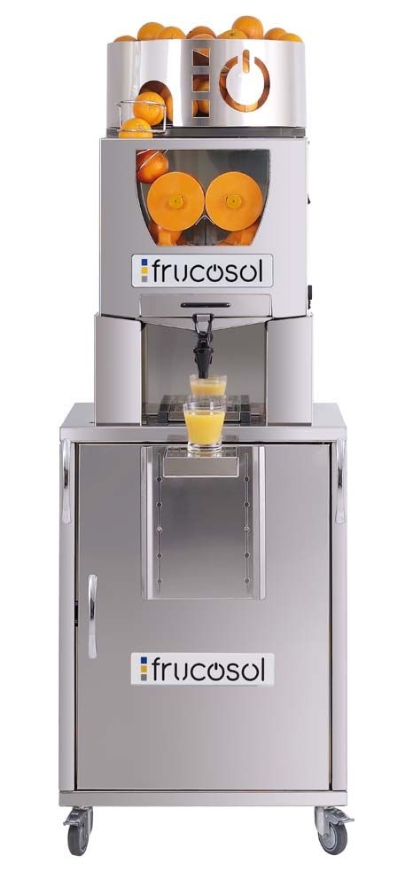 Frucosol elektr. Orangenpresse Self Service auf Rollen für 20-25 Orangen/Min. mit autom. Zufuhr 12kg Saftpresse Entsafter Edelstahl