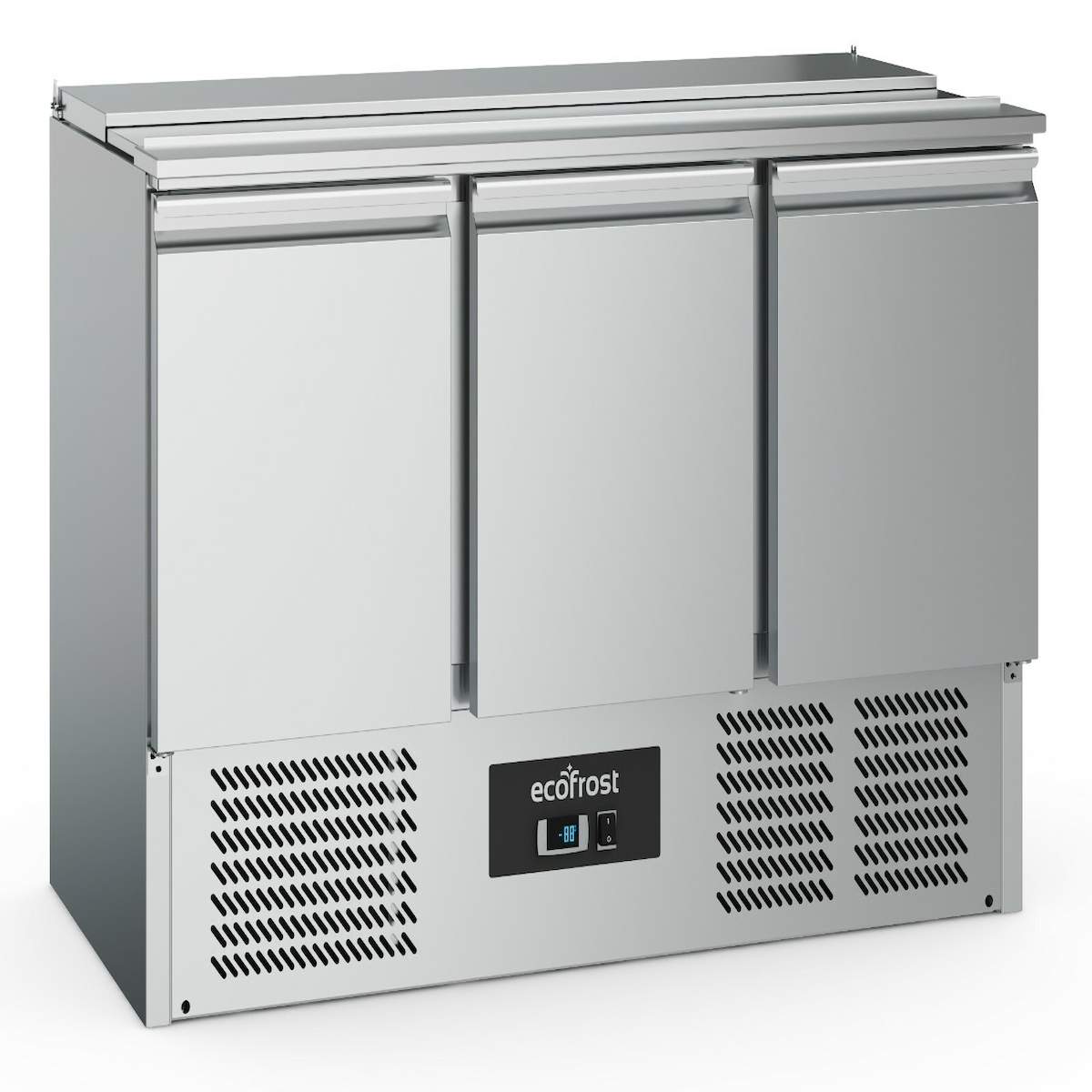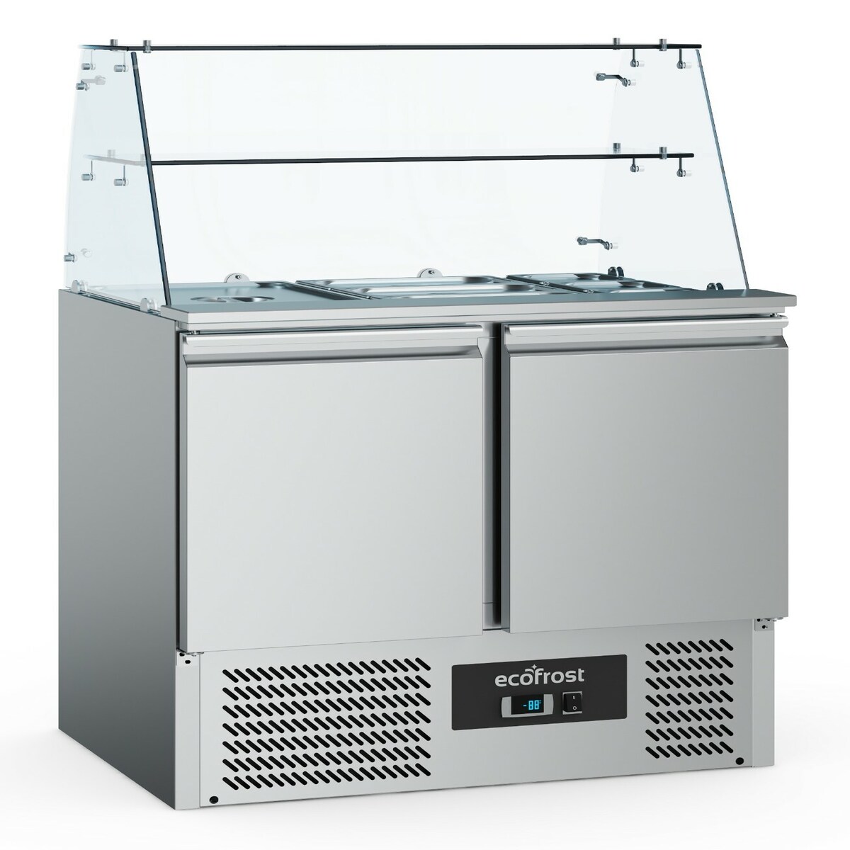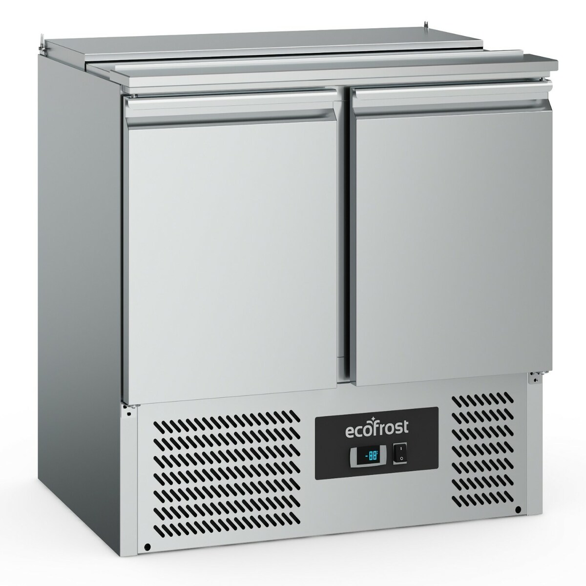 Gastro Saladette ECO 900 mit Klappdeckel - 240 Liter, 3kW/h, Platz für 2 x 1/1 GN Behälter, statische Kühlung