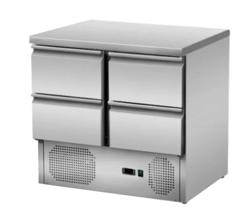 A&S polarny Gastro Mini-Kühltisch Saladette Kühltisch Edelstahl 900x700x870mm 176 Liter 4 Schubladen