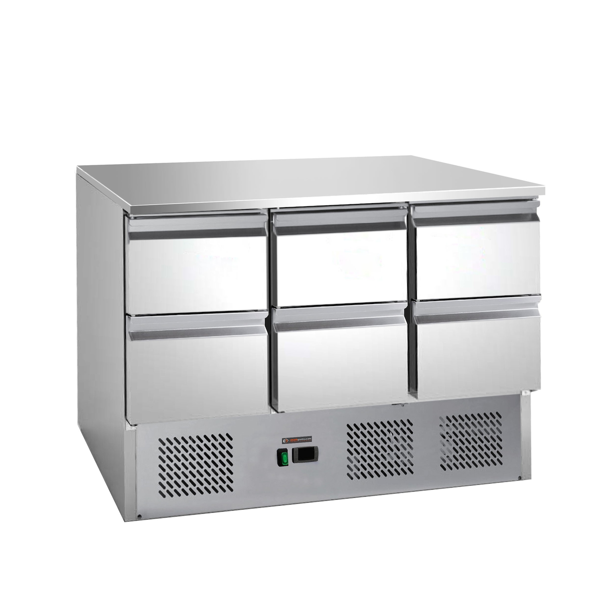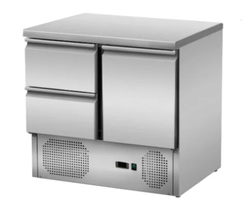 A&S polarny Gastro Mini-Kühltisch Saladette Kühltisch Edelstahl 900x700x870mm 176 Liter 1 Tür 2 Schubladen