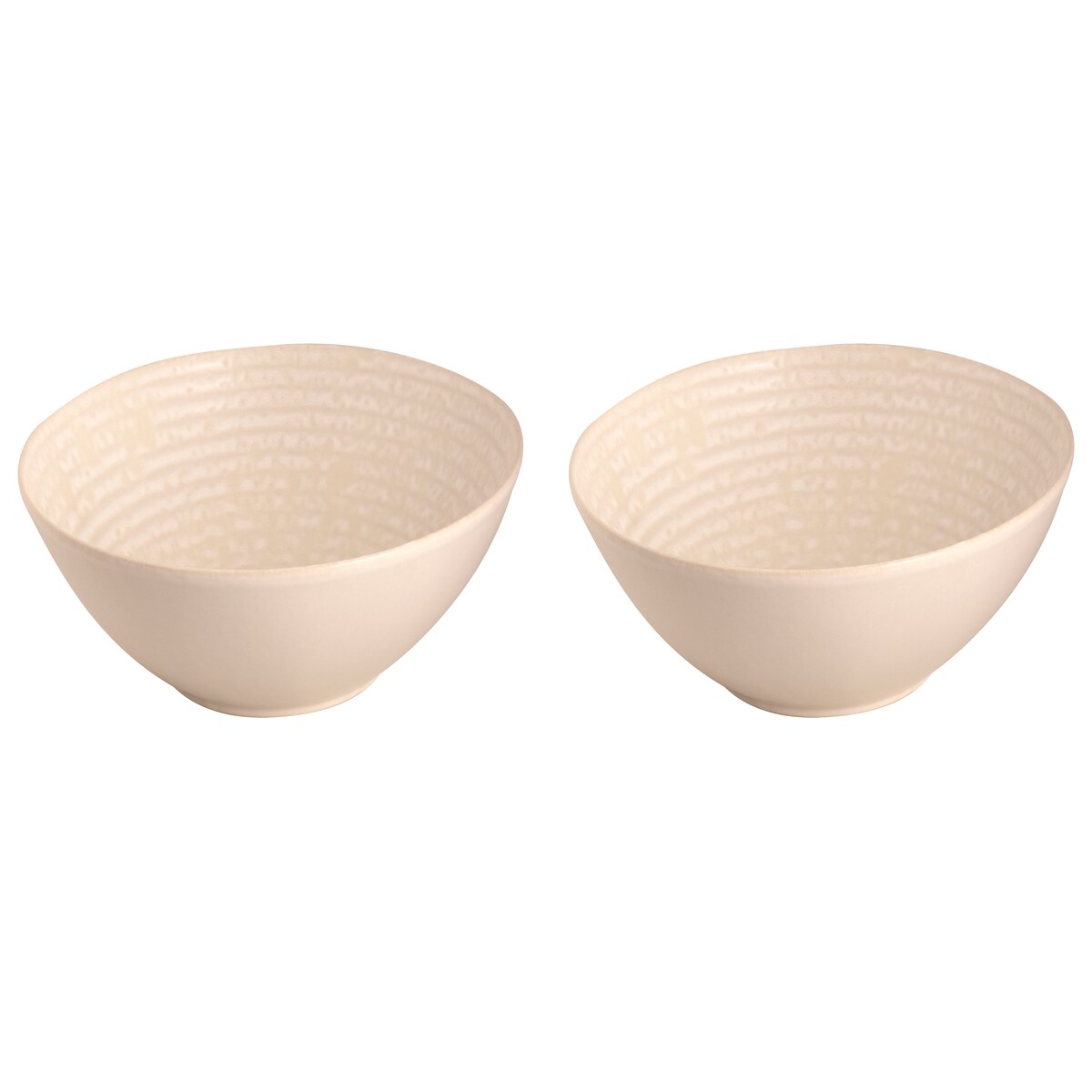 palmer Ripple Schüssel groß - 2er-Set, Steinzeug, Ø 24 cm, 1,5 L, Elfenbein weiß mattes Finish, organische Form, für Beilagen, Salat