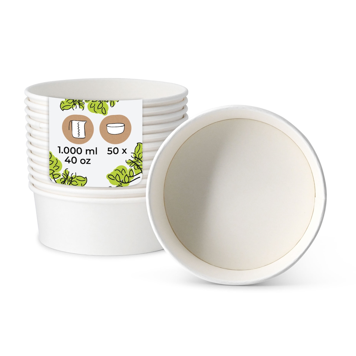BIOZOYG Salatschale 50 Stück 1000 ml weiß Suppenschalen Einwegschalen to go Einweggeschirr Deli Container Bowl Kartonschale Einweg Suppenbehälter