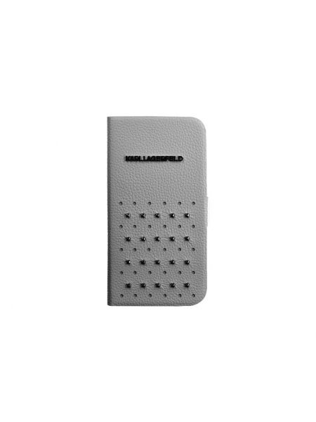 Karl Lagerfeld S4 Book Case White Leather With Gun Metal Studs fuer Samsung Galaxy S4 - Karl Lagerfeld