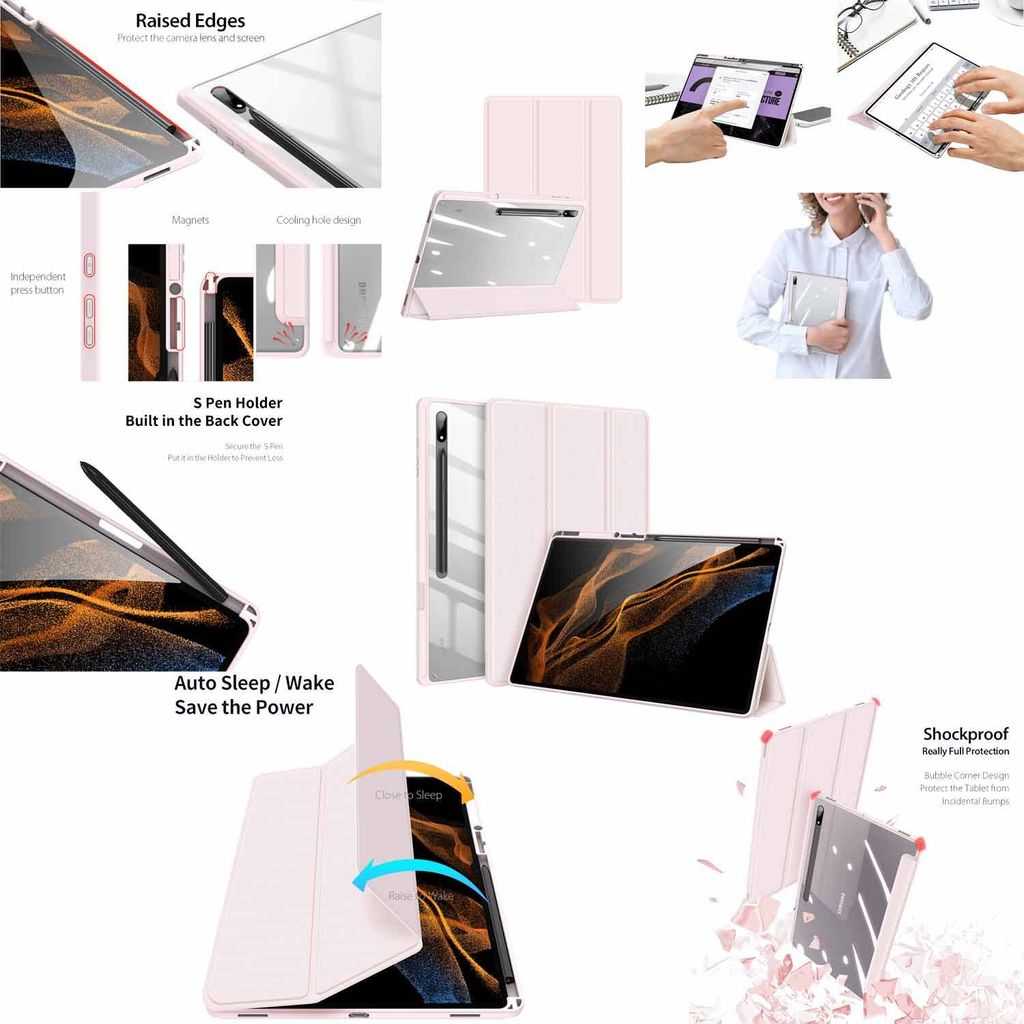 Für Samsung Galaxy Tab S8 Ultra Tablet Tasche Hülle Etui Wake UP Smart Pink Case