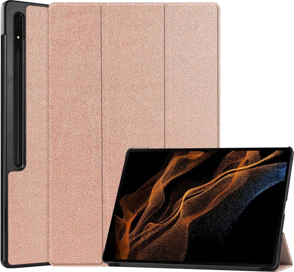 Für Samsung Galaxy Tab S8 Ultra 3folt Wake UP Smart Cover Rose Tablet Tasche Neu