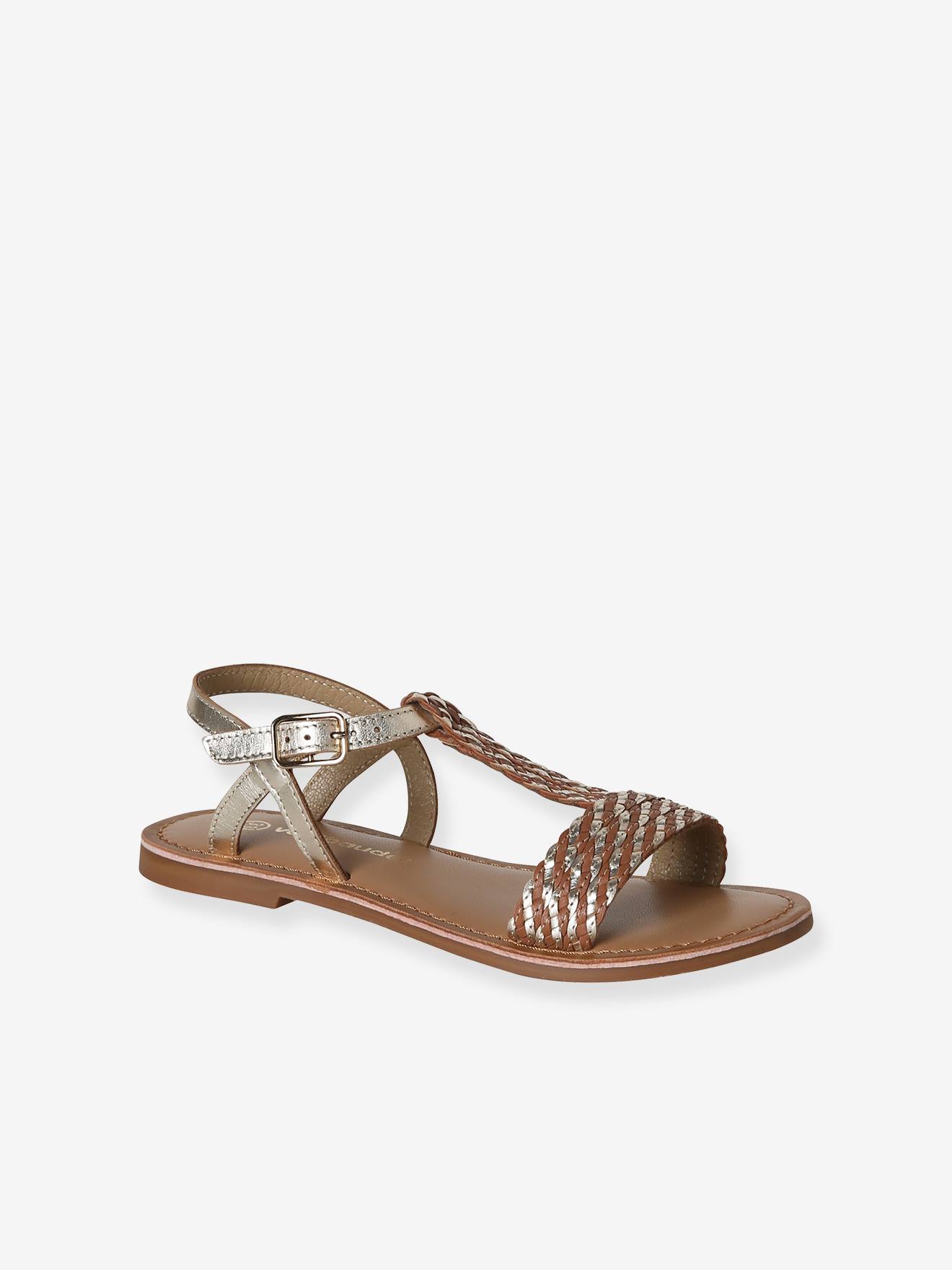 Mädchen Sandalen aus Leder mit Klettverschluss, Metallic-Effekt gold Gr. 36 von vertbaudet