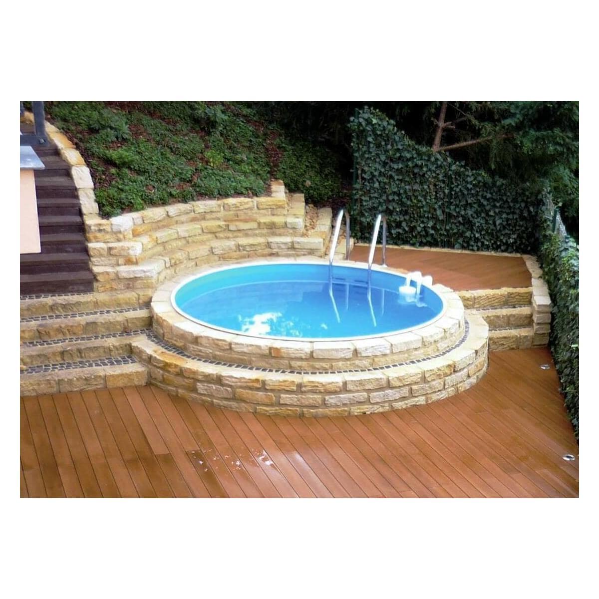 Trend Pool Trendstone Styroporpool Basis Set, 500x300x150cm, rechteckig, EPS40, Innenhülle blau, Einstiegsleiter, Sandfilteranlage