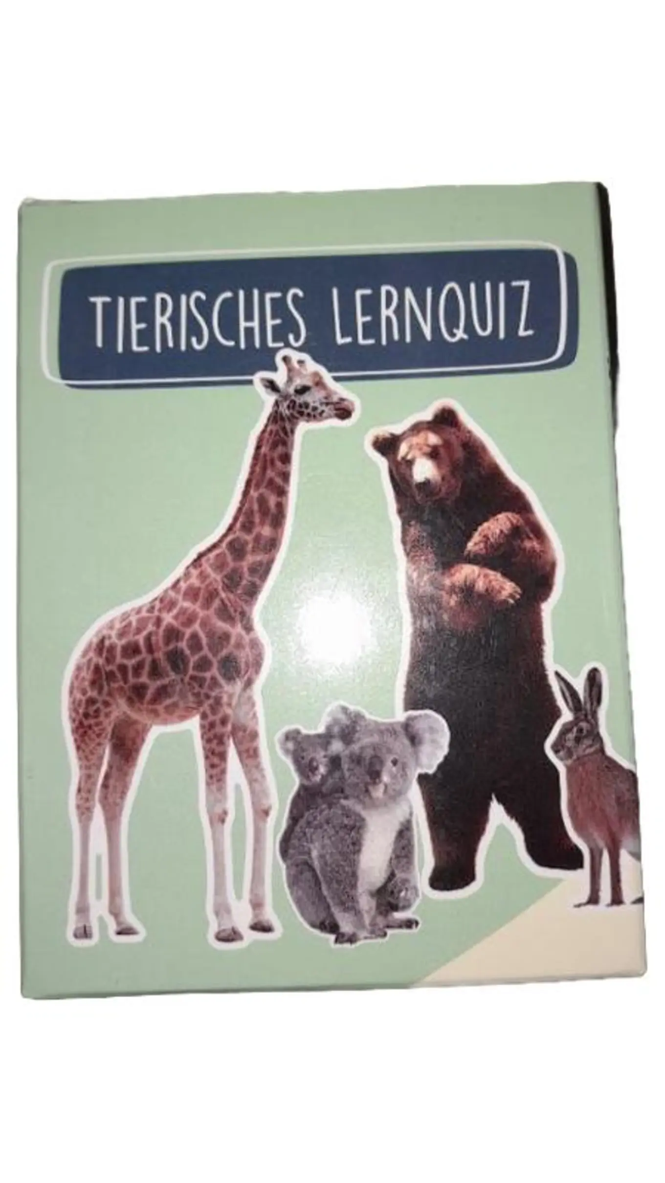 MARKENLOS Tierisches Lernquiz Kartenspiel Tiere 26 Rätsekarten Würfel Sanduhr
