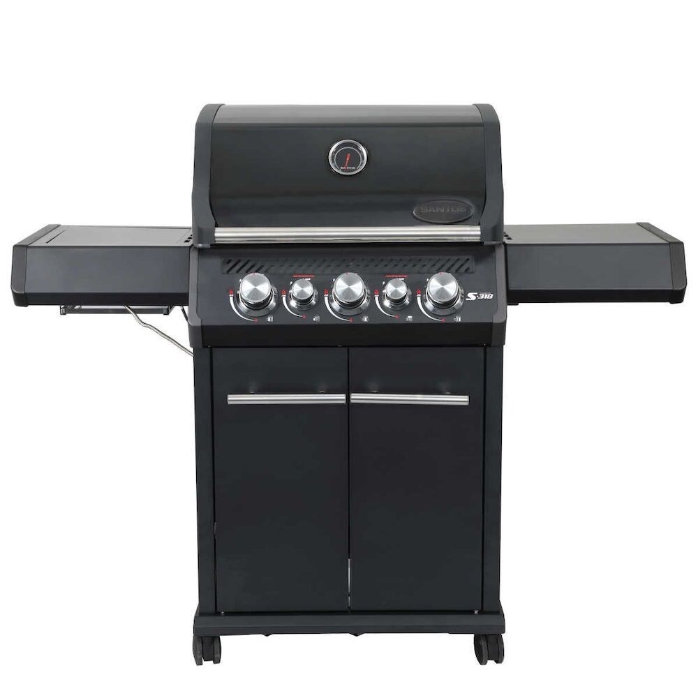SANTOS S-318 Gasgrill Schwarz mit 3 Hauptbrennern plus Infrarot-Heckbrenner und 800 Grad-Seitenbrenn