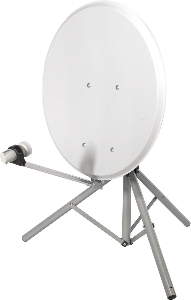 Camping SAT Koffer Schüssel mit HD single LNB und 10m Kabel + Dreibein Stativ bis 100cm (mobile Sat Anlage 1 Teilnehmer)
