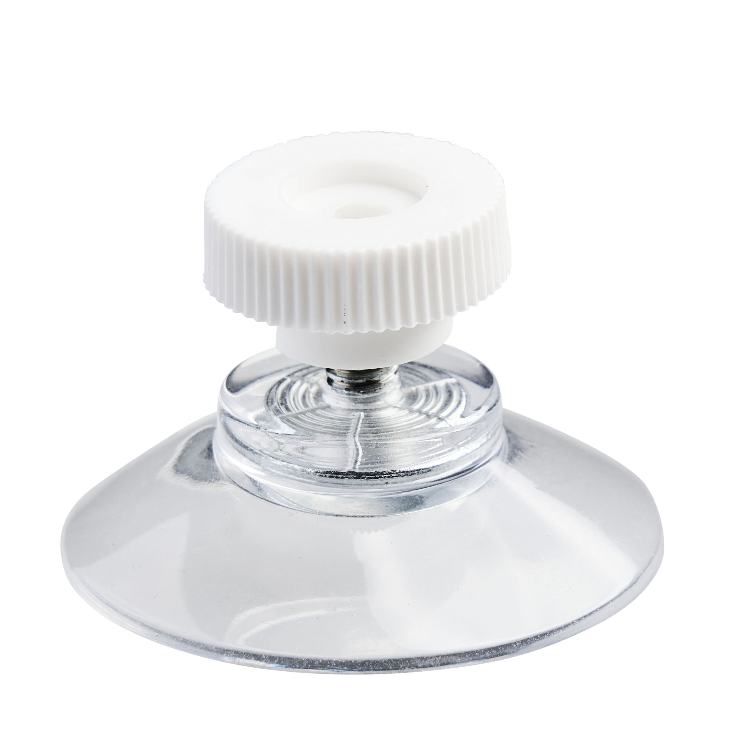 Saugnäpfe, ø = 50 mm, transparent, mit M4-Gewinde 6 mm lang, inkl. weißer Rändelmutter, Weich-PVC