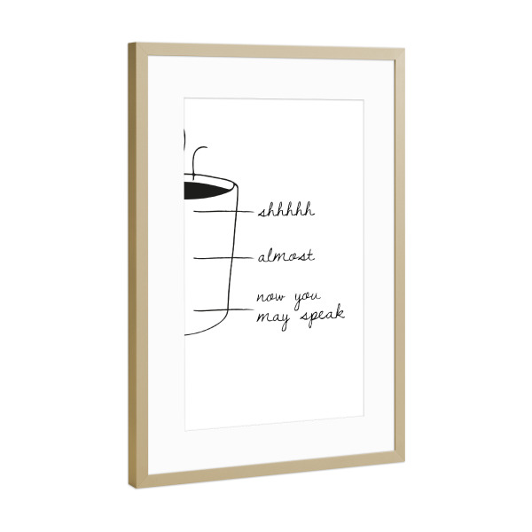 Poster mit Rahmen Gold "Cup Scale" artboxONE - Typografie,Essen & Trinken,Schwarzweiß - Coffee,Cup,Shhhh,Almost