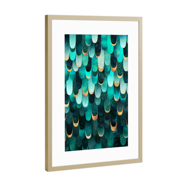 Poster mit Rahmen Gold "Feathered - Turquoise" artboxONE - Abstrakt - Graphic,Abstract,Pattern,Turquouse,Ocean,Mermaid,Scales