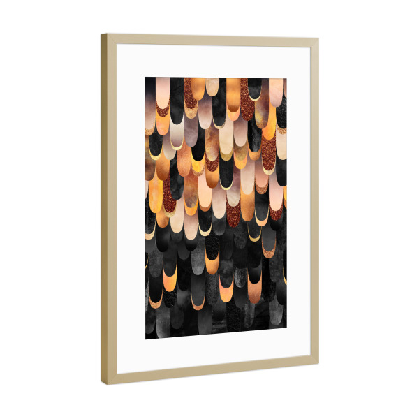 Poster mit Rahmen Gold "Feathered - Copper And Black" artboxONE - Abstrakt - Graphic,Abstract,Pattern,Copper,Black and copper,Scales,Mermaid