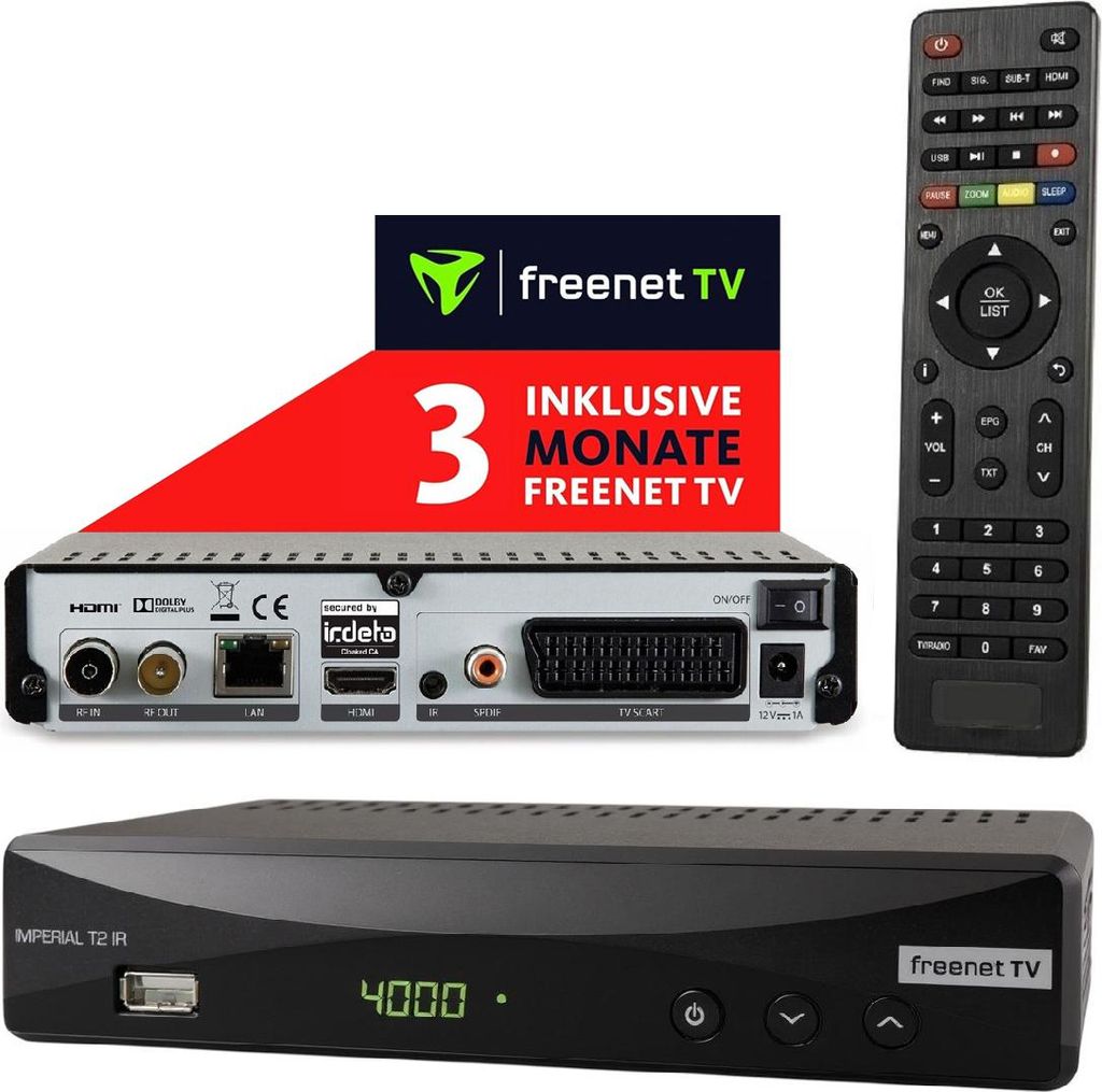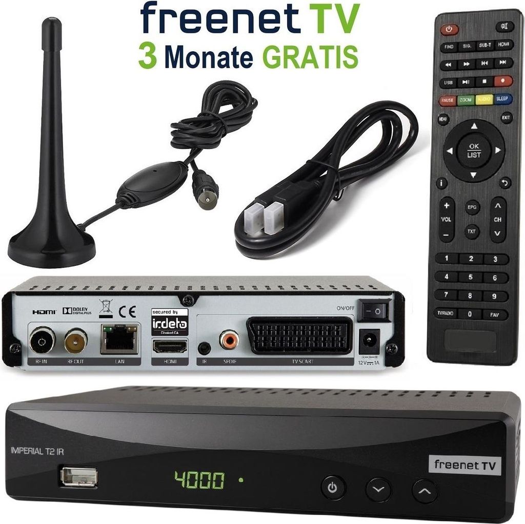Imperial T2 IR Plus DVB-T2 Receiver (Inkl. 3 Monate FREENET TV) + DVB-T Antenne + HDMI Kabel, PVR Ready, HDMI & SCART, USB, HDTV mit Aufnahmefunkti...