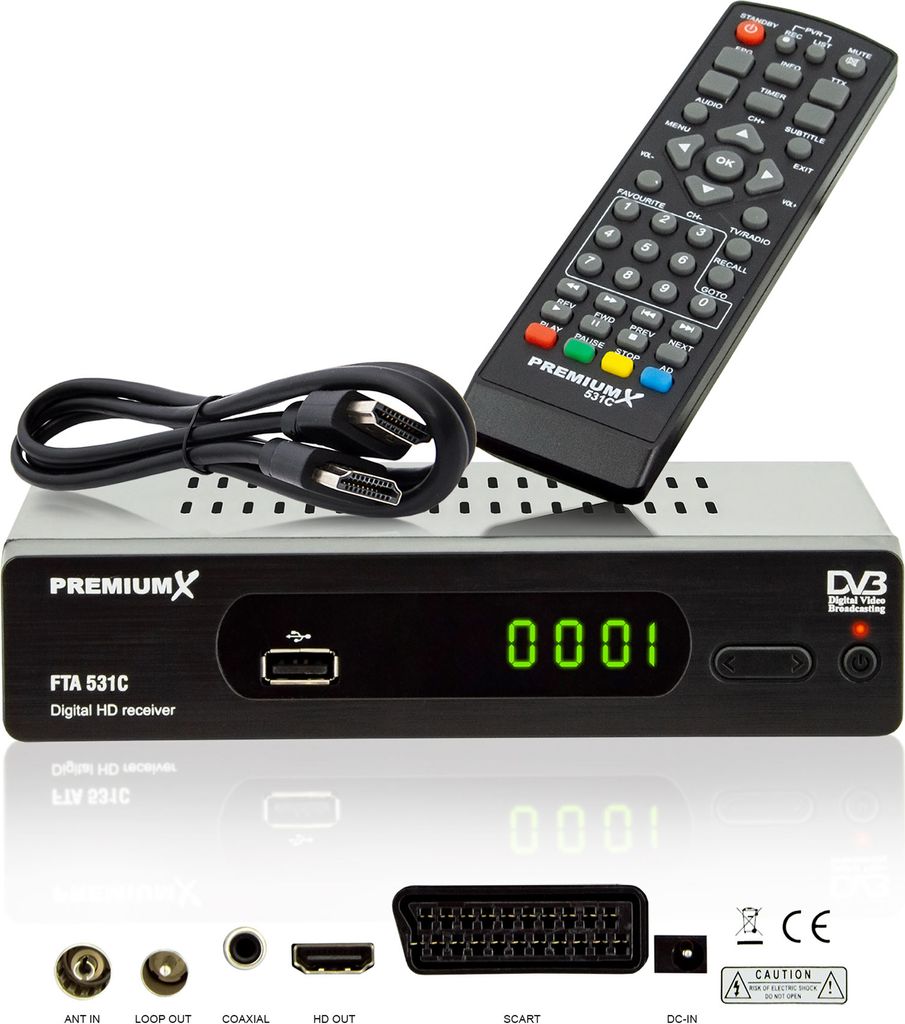 PremiumX Kabel Receiver DVB-C FTA 530C Digital FullHD TV Auto Installation USB Mediaplayer SCART HDMI Kabelfernsehen für jeden Kabel-Anbieter