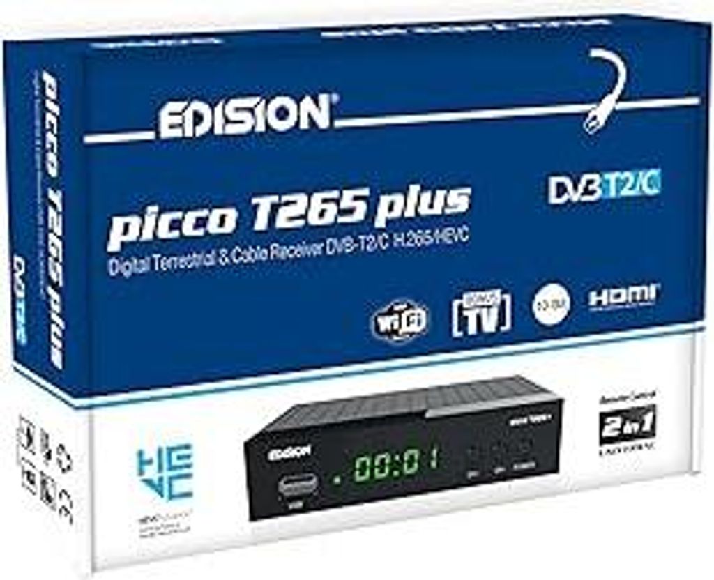 EDISION Picco T265 Plus Terrestrischer DVB-T2 & Kabel-Receiver DVB-C H.265 HEVC FTA Full HD PVR, USB, HDMI, SCART, S/PDIF, IR, USB WiFi Support, Un...