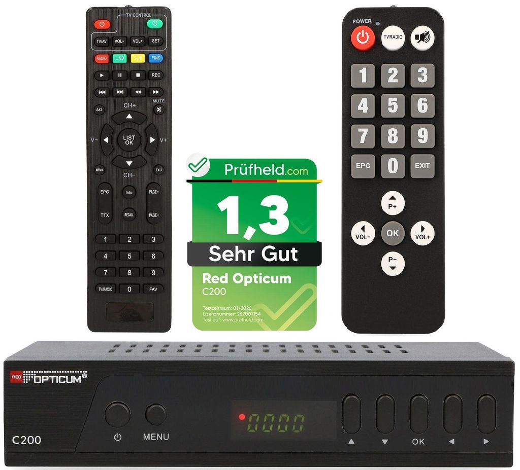 Opticum C200 Full HD Kabel Receiver mit PVR Aufnahmefunktion + Senioren-Fernbedienung, DVB-C Receiver für Kabelfernsehen mit HDMI SCART USB Kabela...